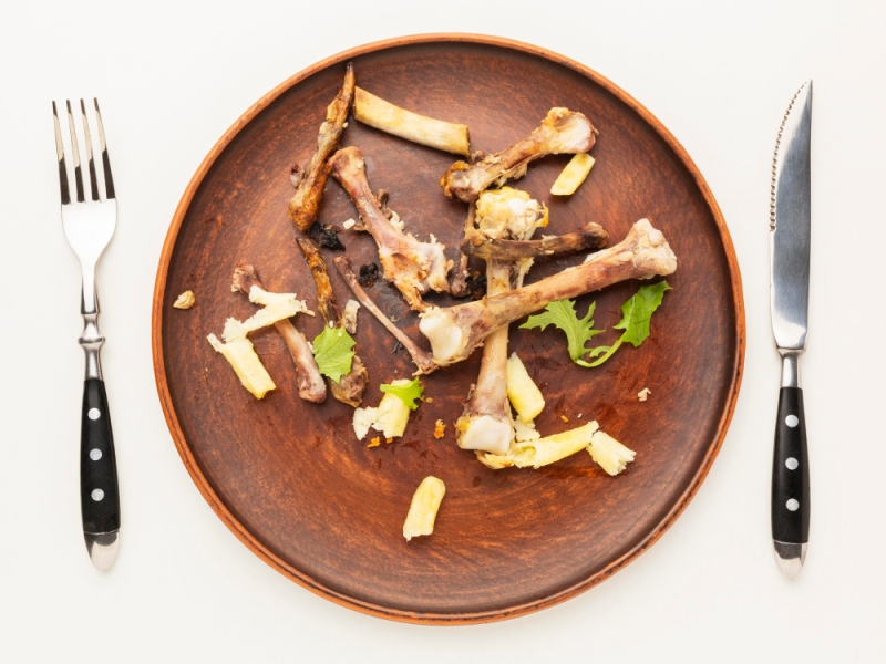 Chicken drumsticks leftover bones in a plate